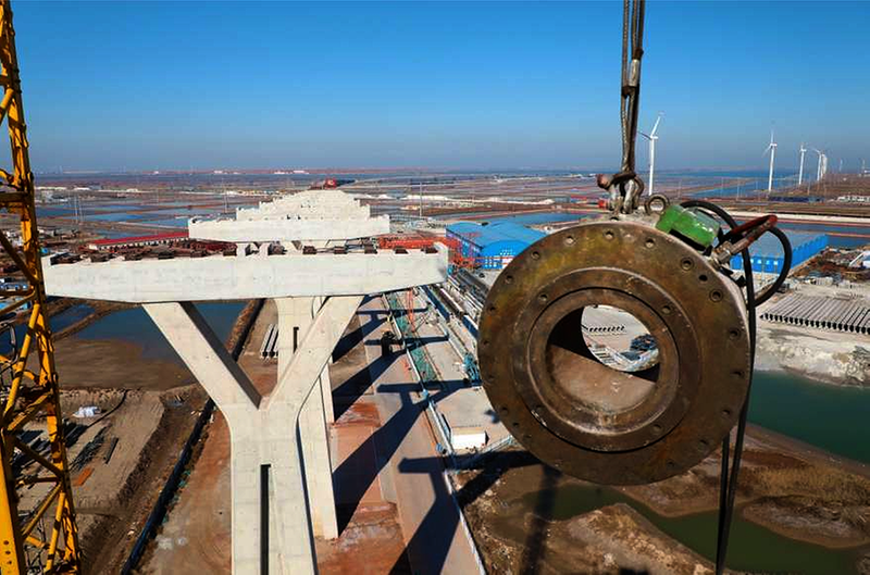 本报无棣讯(通讯员高士东路国富张家慧报道)近期,位于无棣东风港经济园区的g228丹东线滨州段套尔河特大桥正在加紧施工。图为拍摄的套尔河特大桥施工现场。