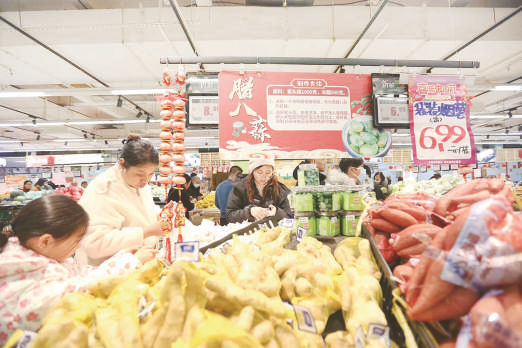 春节临近,各大农贸市场、百货商超一派繁忙的销售景象,市民们选购年货物资,喜迎新春佳节。(记者郭志华摄影)